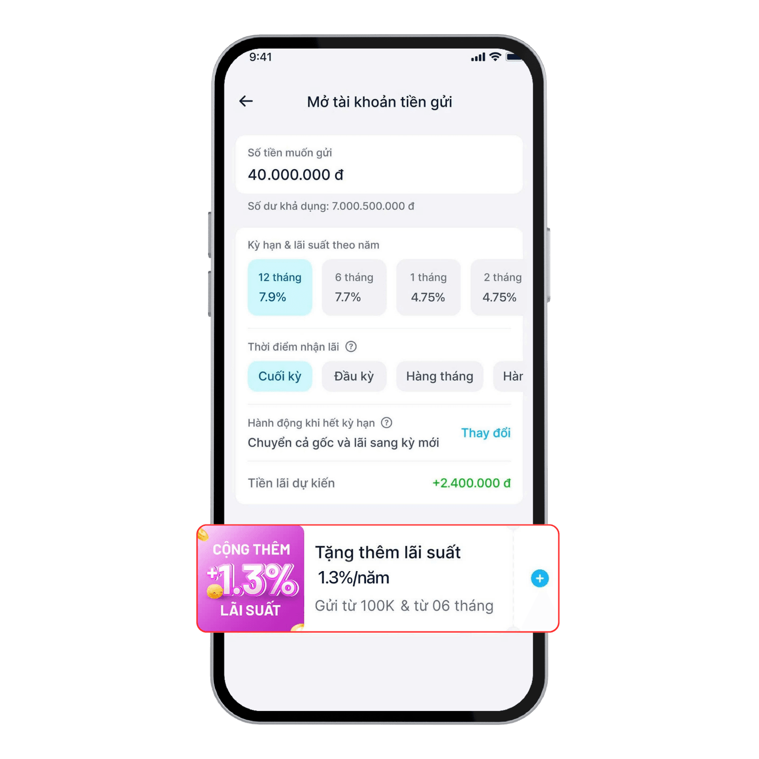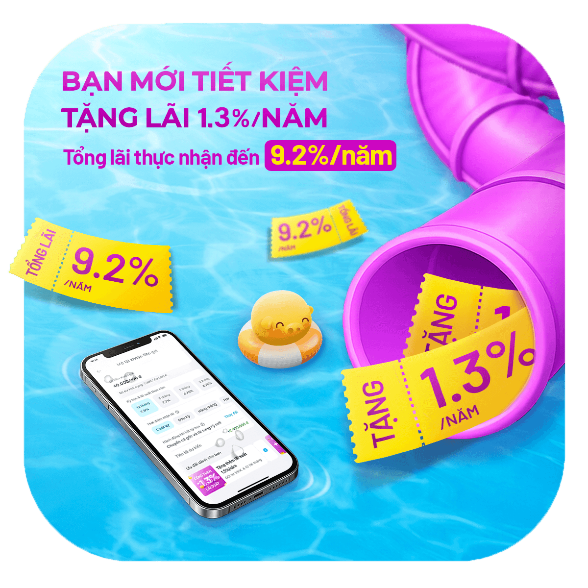 Tặng ngay bạn mới lãi suất 1.3% khi lần đầu mở sổ, bắt đầu chỉ với 100K!