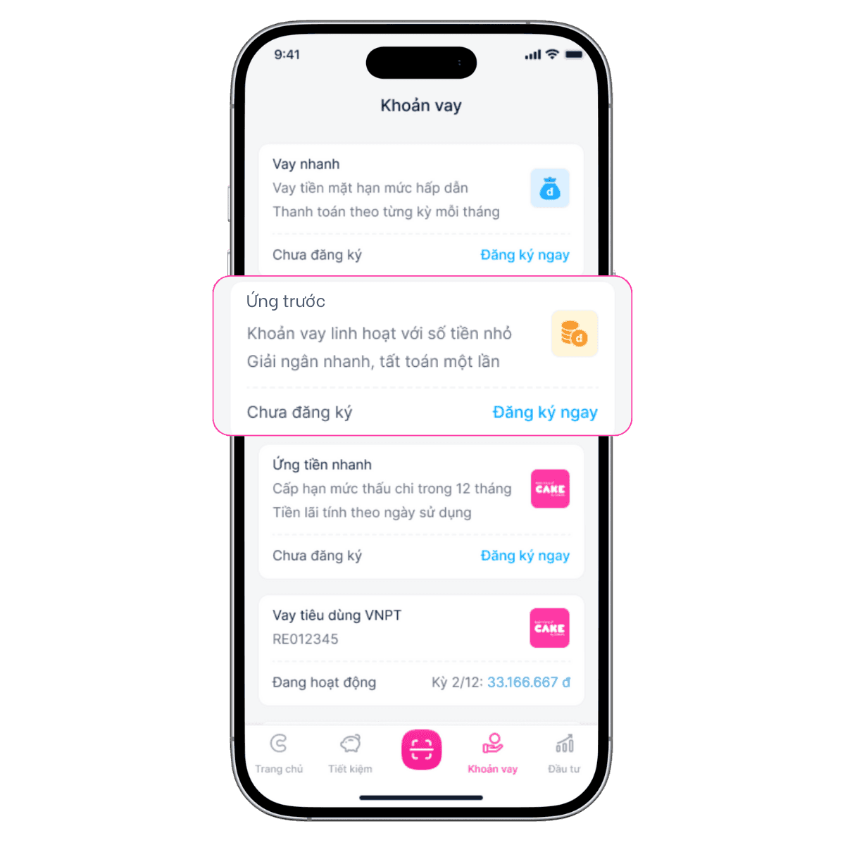 Bước 1:Tại mục “Khoản vay”, chọn “Ứng trước”