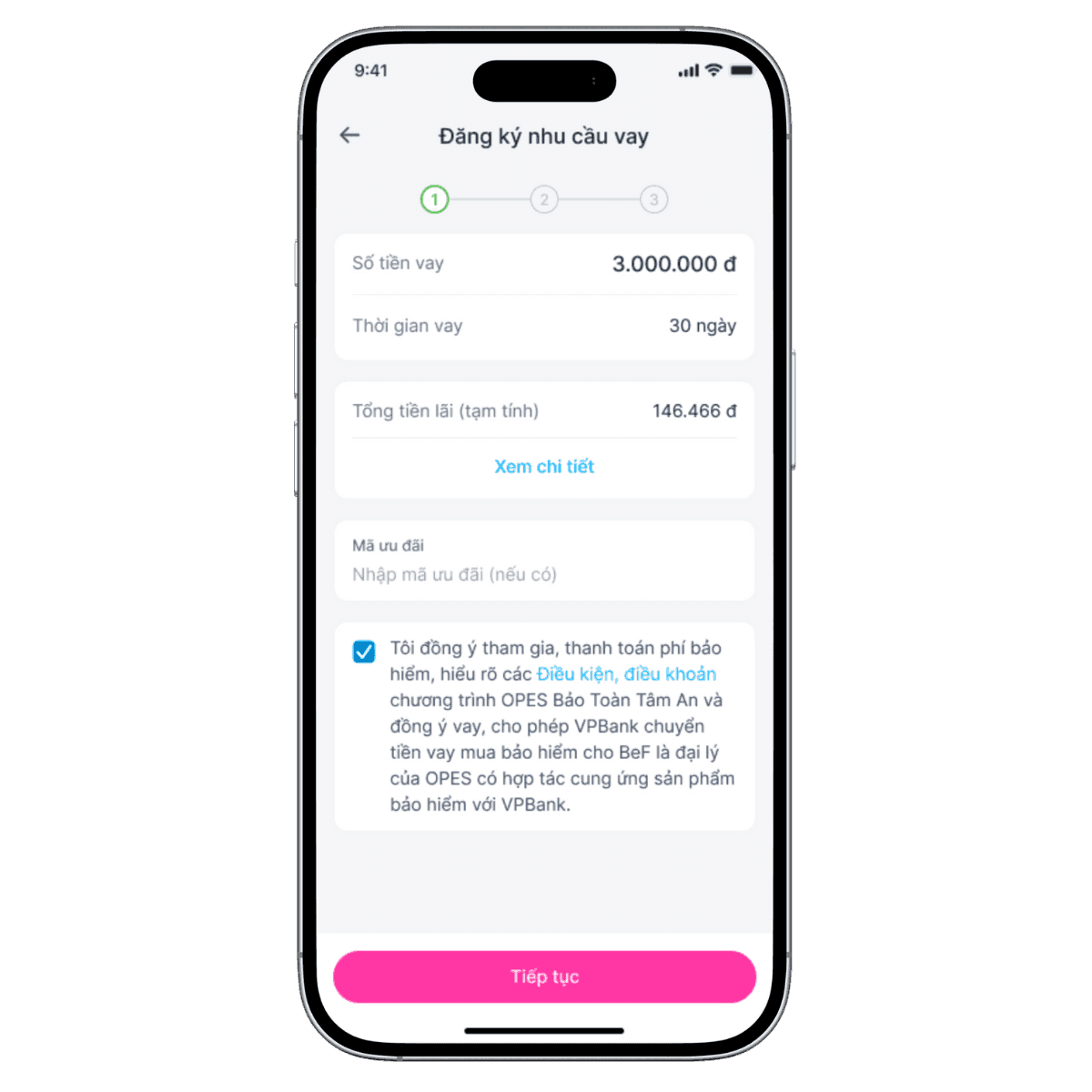 Bước 2:Đăng ký nhu cầu vay