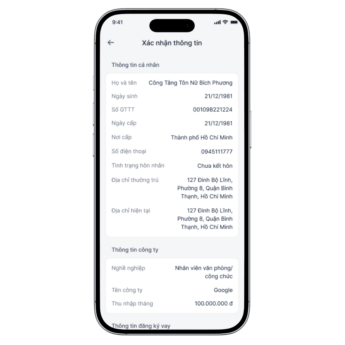 Bước 5:Xác nhận thông tin đăng ký vay